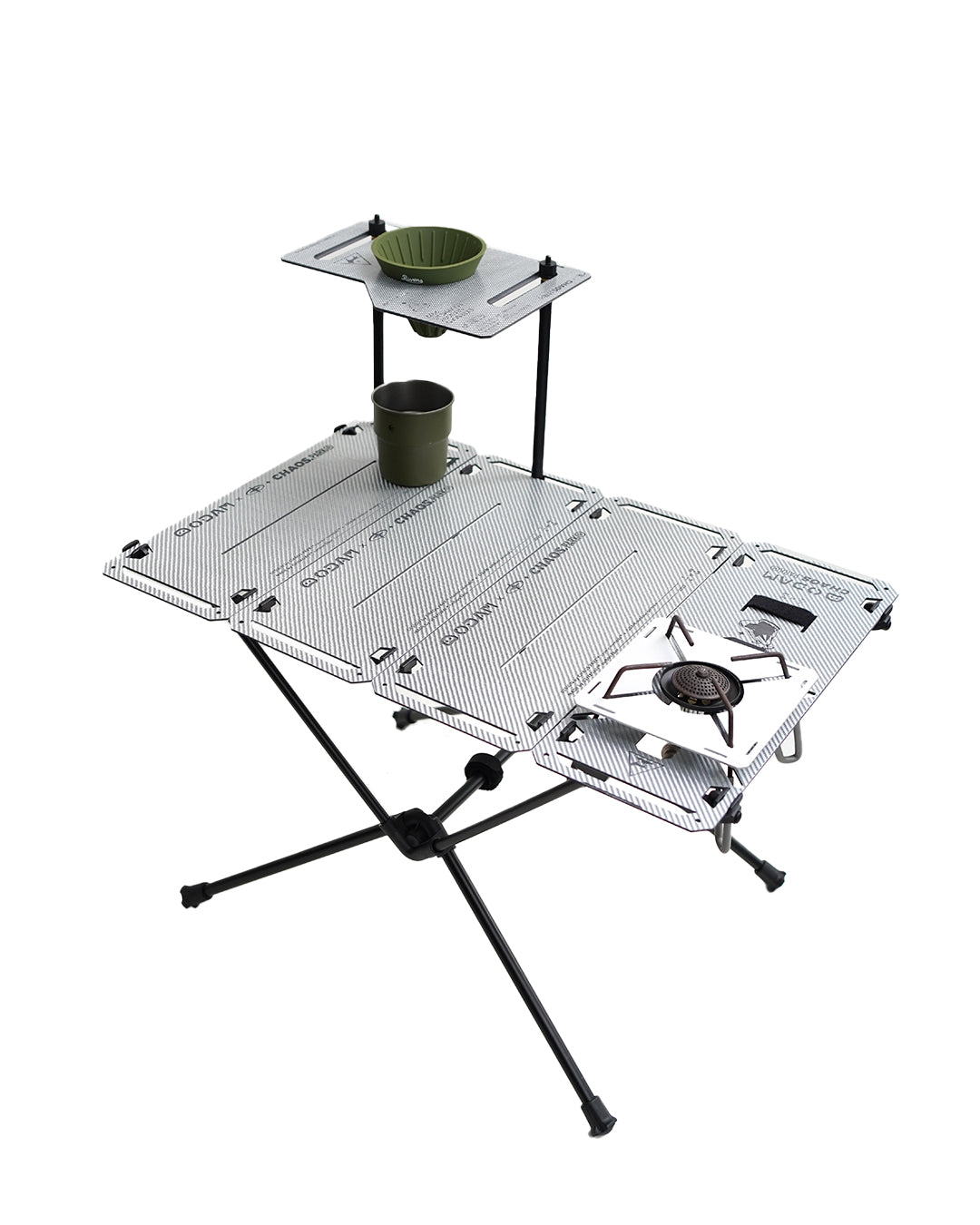 Ultra-light Carbon fiber boards, the overall weight is as light as 1300g, and it is only 8 in x 16 in when stored. Several module components, including spider stove module, carbon fiber laminate, and acrylic laminate, coffee module, which can adapt to the needs of different outdoor scenes.