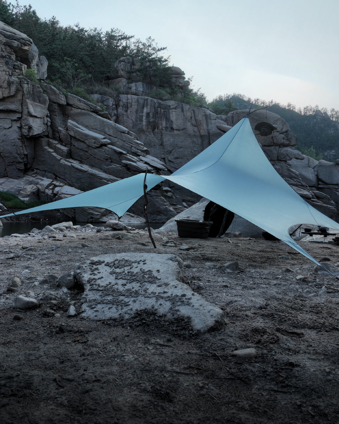 Ultra-light tarp. It can also be built in combination with a coastline inner tent.
