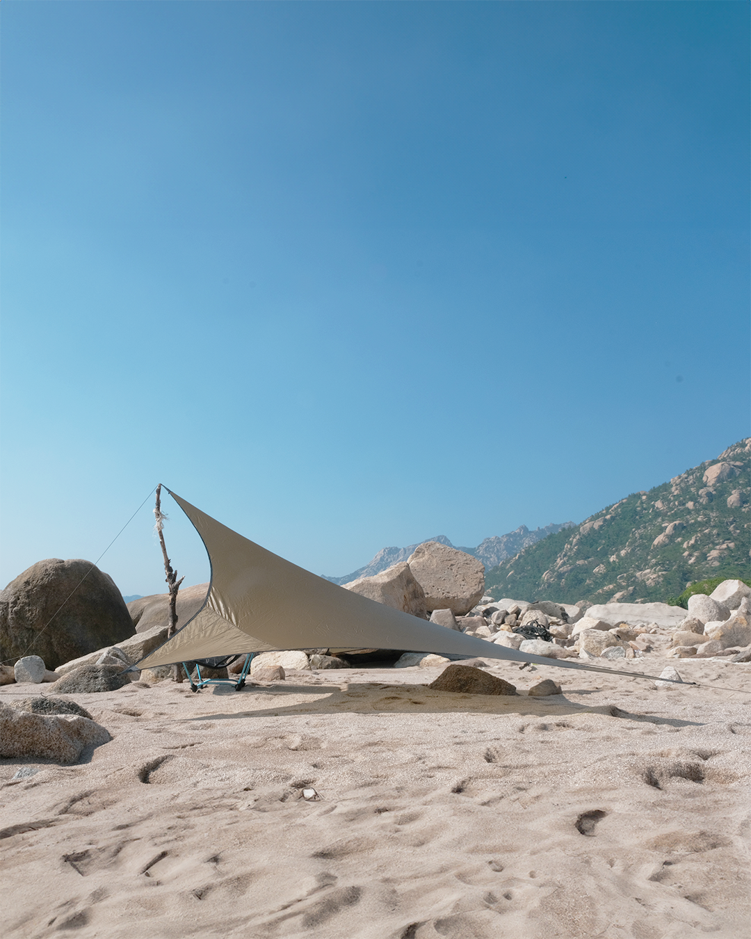 Ultra-light tarp. It can also be built in combination with a coastline inner tent.