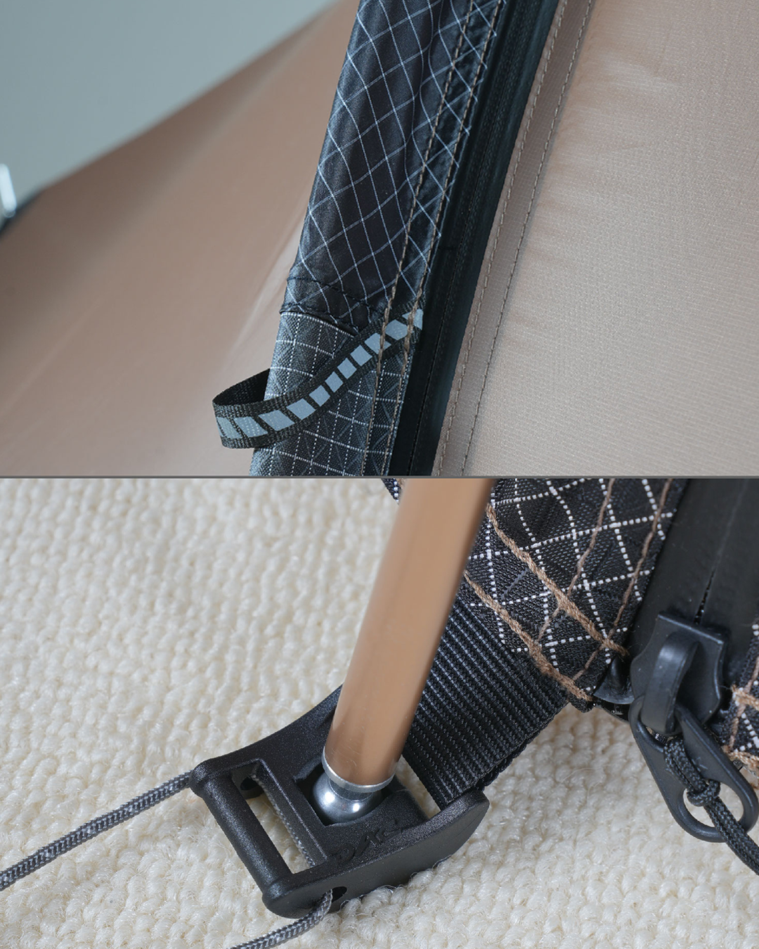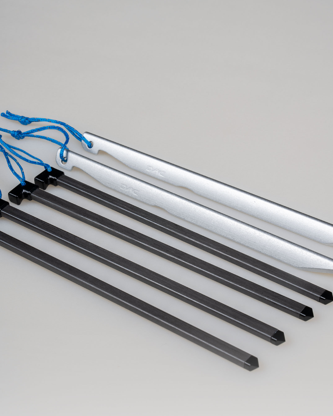 Utilizes DAC NFL tent poles in conjunction with trekking poles for tent construction.