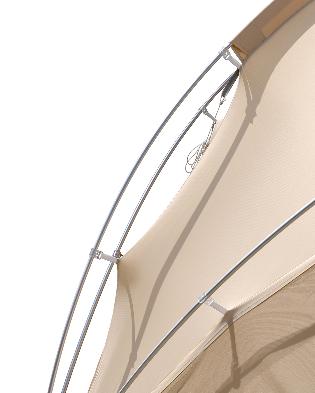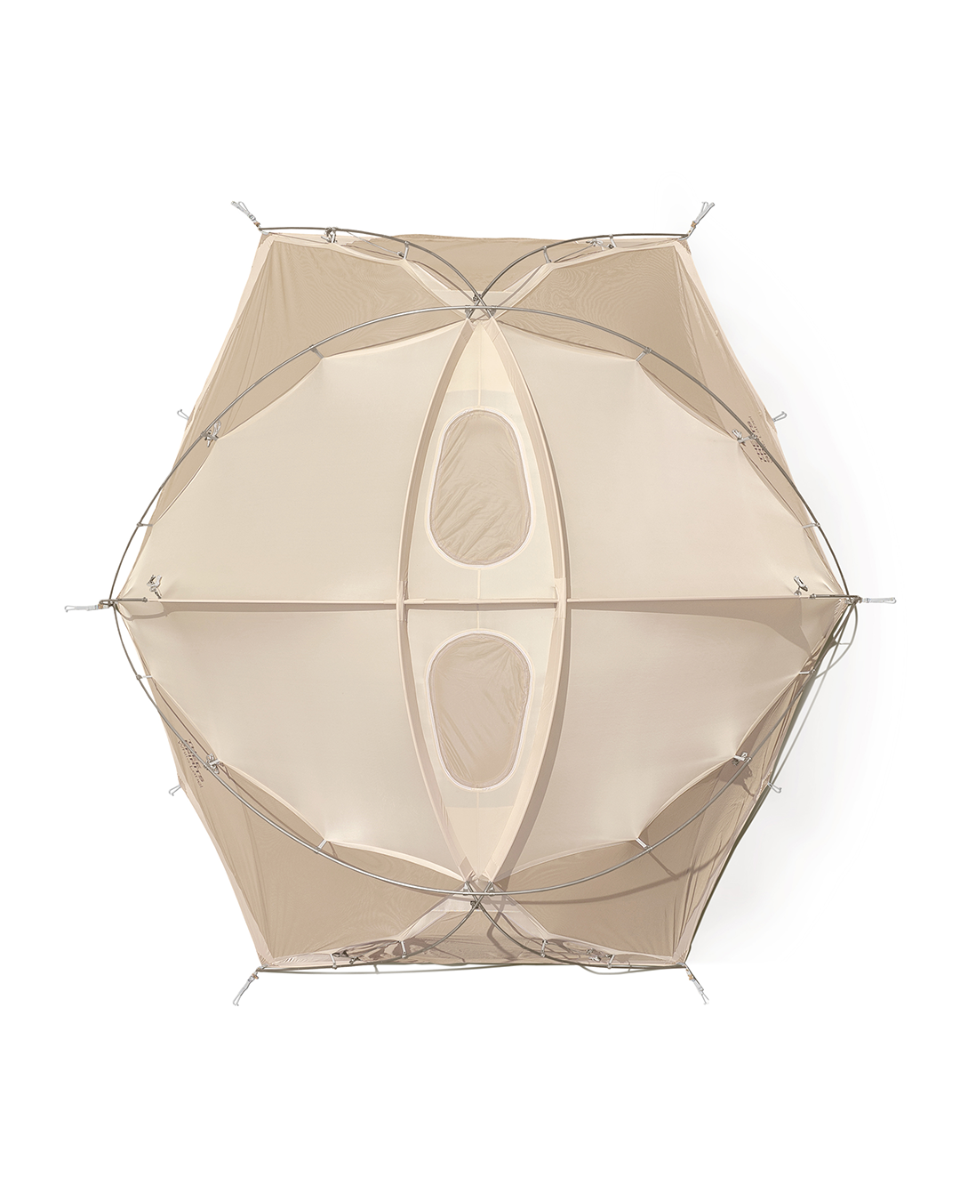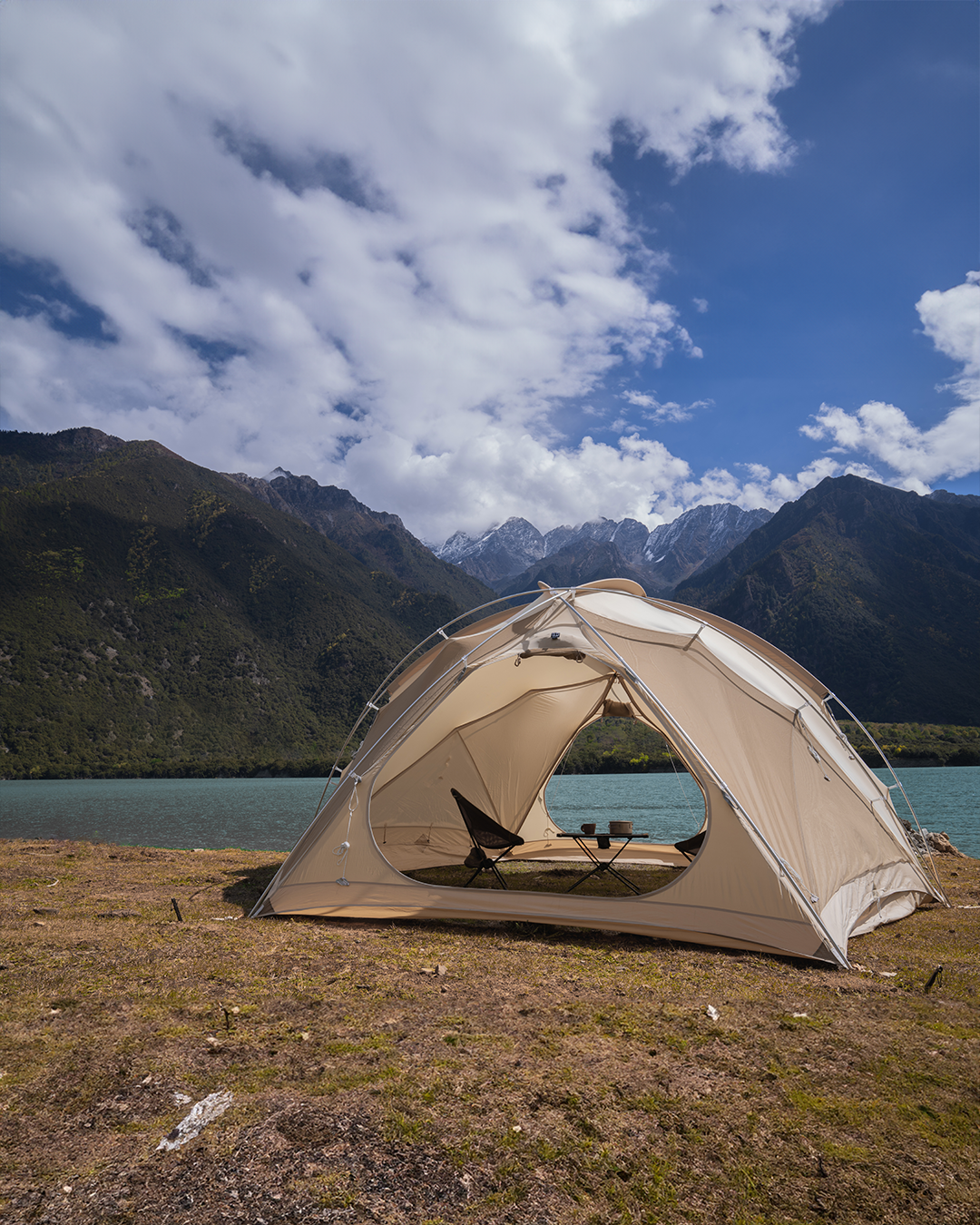 The classic structure of Sky Dome is representative and beautiful from every angle. Building upon Sky Dome, after a year of adjustments,we have made some changes and created Sky Dome Pro. Sky Dome Pro has the same structure as Sky Dome, with universal poles. However, in terms of usage, the Pro version features a lighter 30D fabric and additional mesh windows in the inner tent, greatly enhancing ventilation. Therefore, it is more suitable for three-season use.