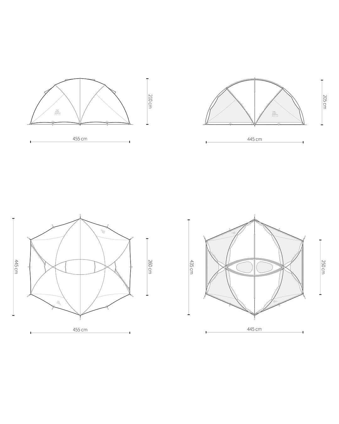 - Inner Size: L 445cm x W 435cm x H205cm (L 14'7" x W 14'3" x H 6'9")