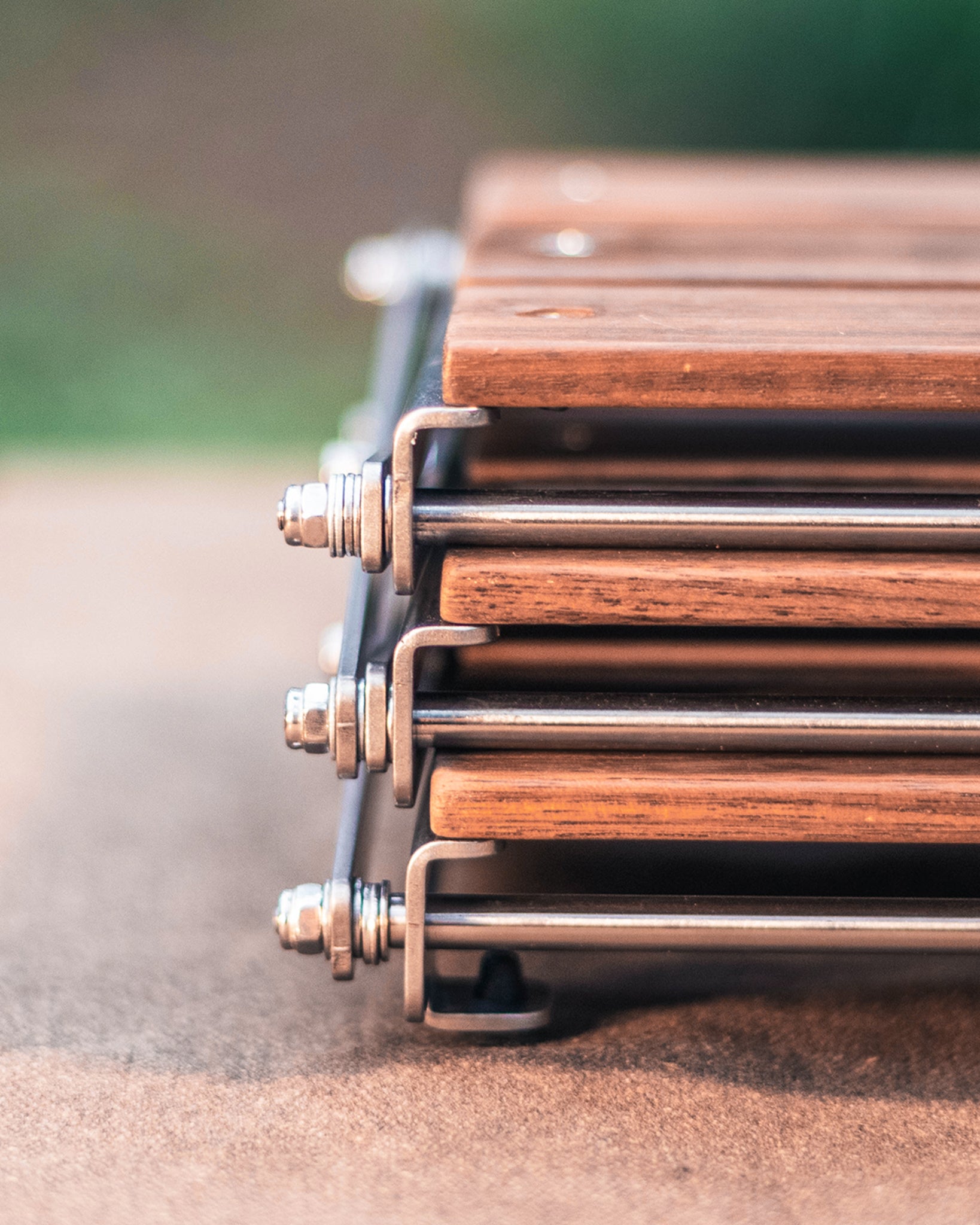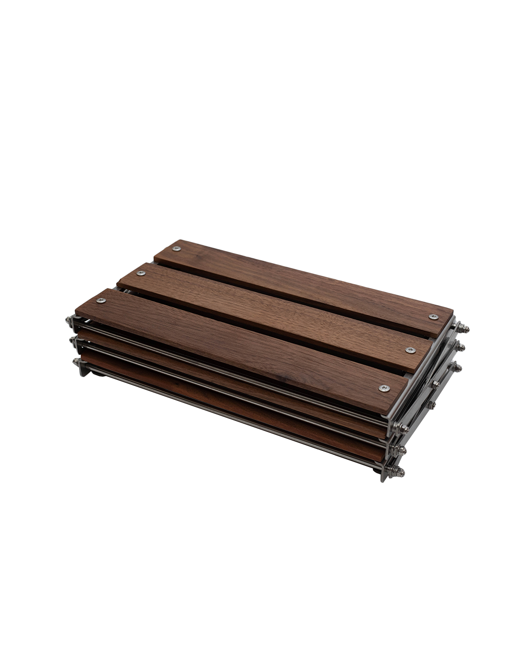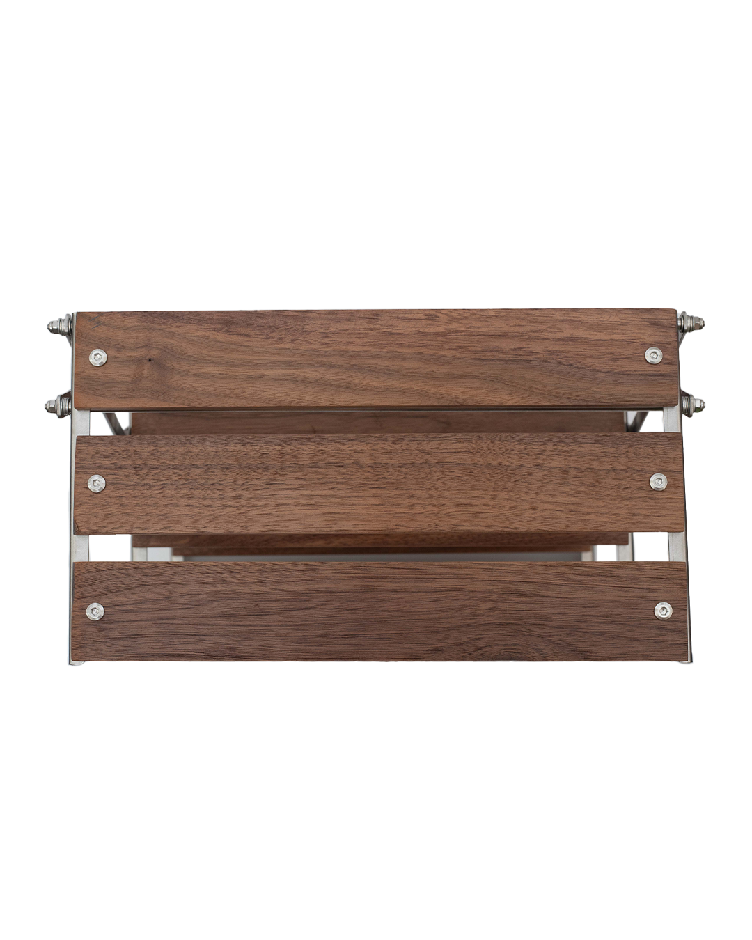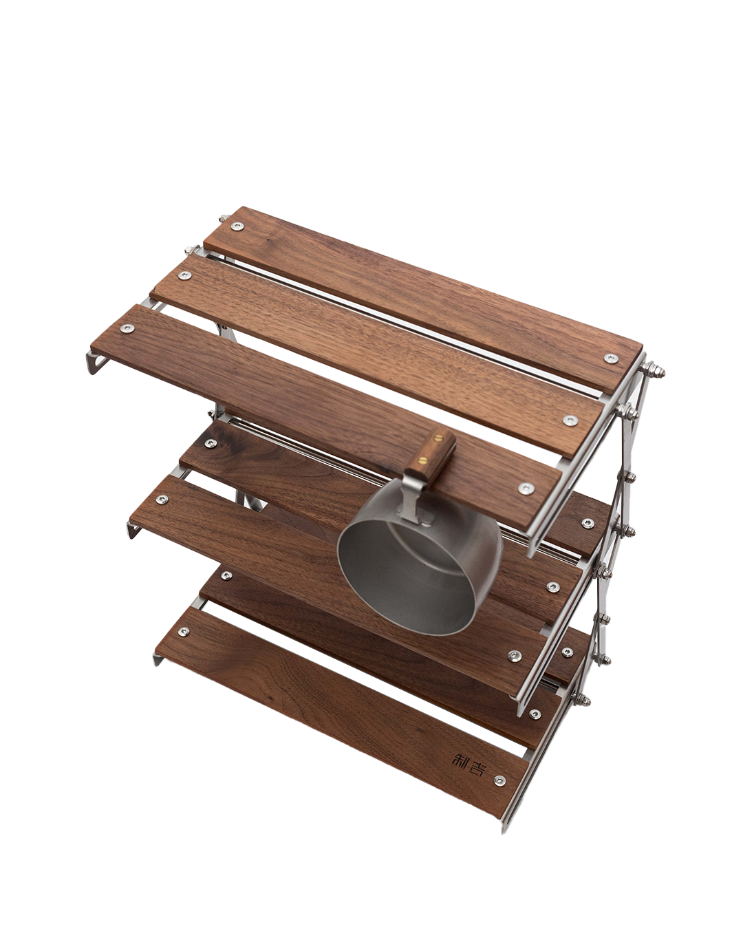 The Very Made Outdoor 3-Tier Quick Folding Shelf artfully blends walnut wood and stainless steel into a sleek, space-saving design. This delicate yet sturdy shelf features three tiers and allows for quick opening and folding, making it ideal for on-the-go storage during camping trips or for organizing small items. It is equipped with anti-slip rubber pads on the bottom to enhance stability.